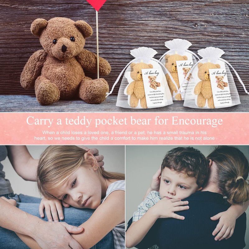 - Package Includes: you will receive 12 pieces of little pocket bears, 12 pieces of cards and 12 pieces of white organza bags, 36 pieces in total, place the mini bears and cards in the bag and wear them at all times