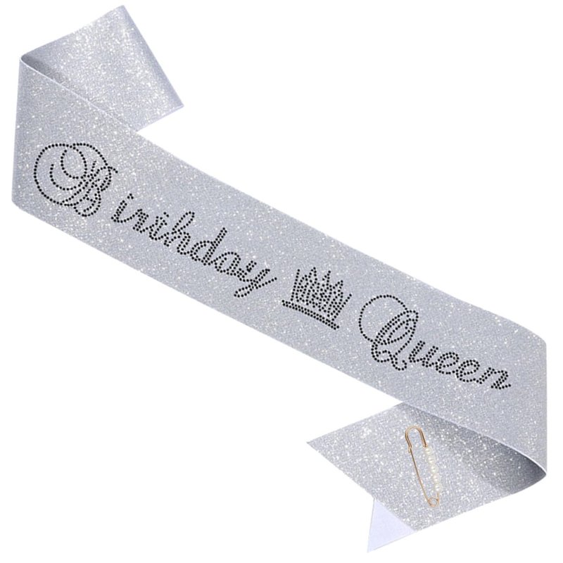ZHBDPaty "Birthday Queen Birthday Sash Silver with Pearl Safety Pin for Women and Girls Birthday Party Favors
