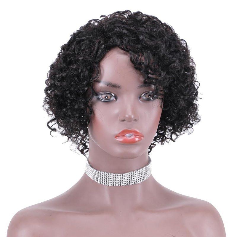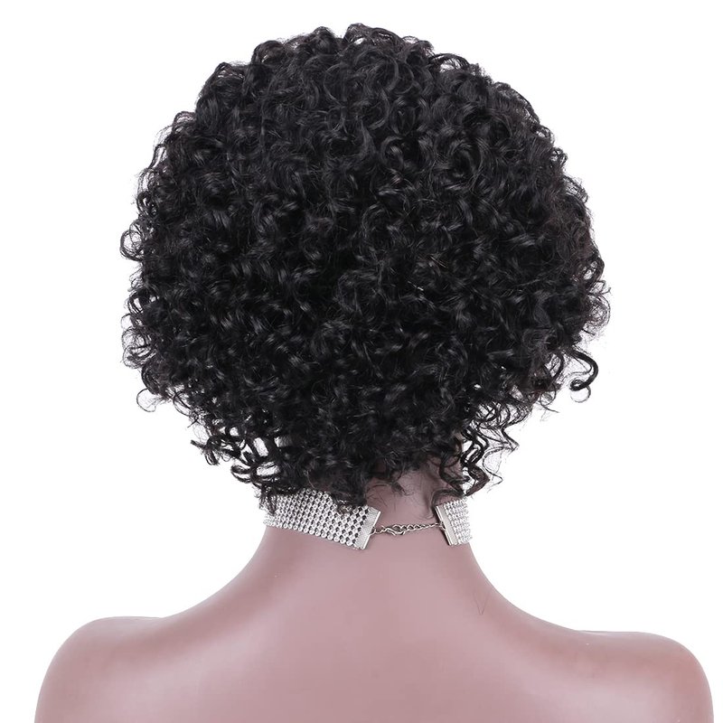 - Wig Material:100% High Quality Brazilian Remy Human Hair,Soft And Tangle-free,Natural And Healthy.Natural Black Hair Color, 6-8 Inches Short Curly Human Hair Wig for Women.