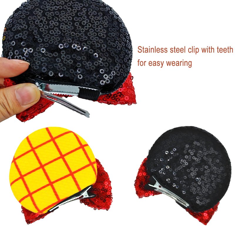 ZHENNAN Mouse Ear Clips for Women, Cute Woody Bow Hair Clips for Adult, Woody Cartoon Theme Birthday Party Favor