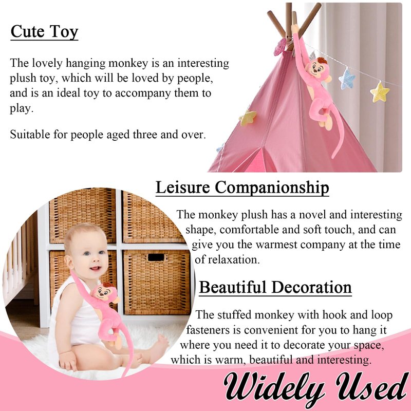 - 【Creative Hook and Loop Fastener Design】: The design of hook and loop fastener is added to the front paw of the super cute stuffed monkey toy. It is convenient for you to hang it in various places you need, such as living room, bedroom, party, etc. Its interesting design and lovely appearance will make your space more warm and beautiful. It is an ideal decoration.