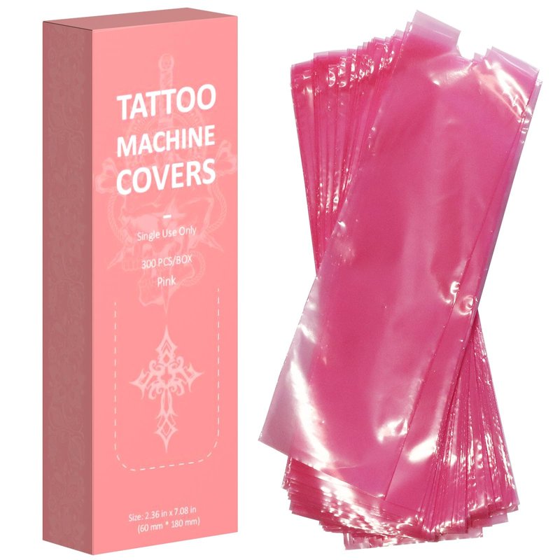 ZHOOGE 300 Pcs Pink Tattoo Machine Covers 2.4 * 7 inch Tattoo Pen Covers Tattoo Machine Bags Tattoo Supplies Tattoo Essentials