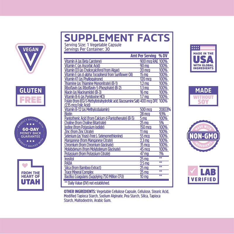 - CLEAN ENERGY - B vitamins have a direct impact on your energy levels, which is why we’ve loaded our formula with a vitamin B complex. Every capsule contains all eight B vitamins. Say goodbye to fatigue and hello to clean energy.