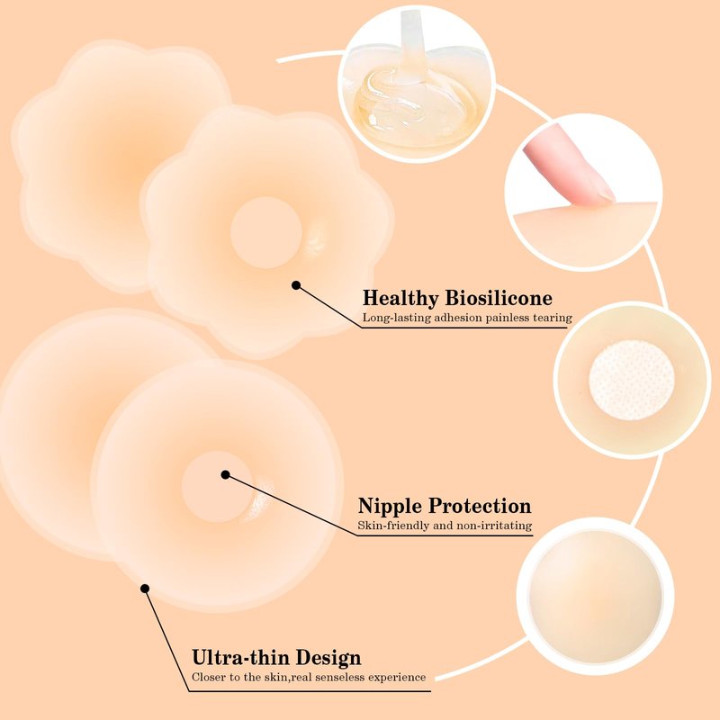 - Comfortable: These invisible pasties are made of high-quality medical-grade silicone, safe and comfortable to wear, gentle on the skin, using non-sensitive adhesive three-layer process, tearing painless. The center is made of skin-friendly satin fabric to protect nipples.
