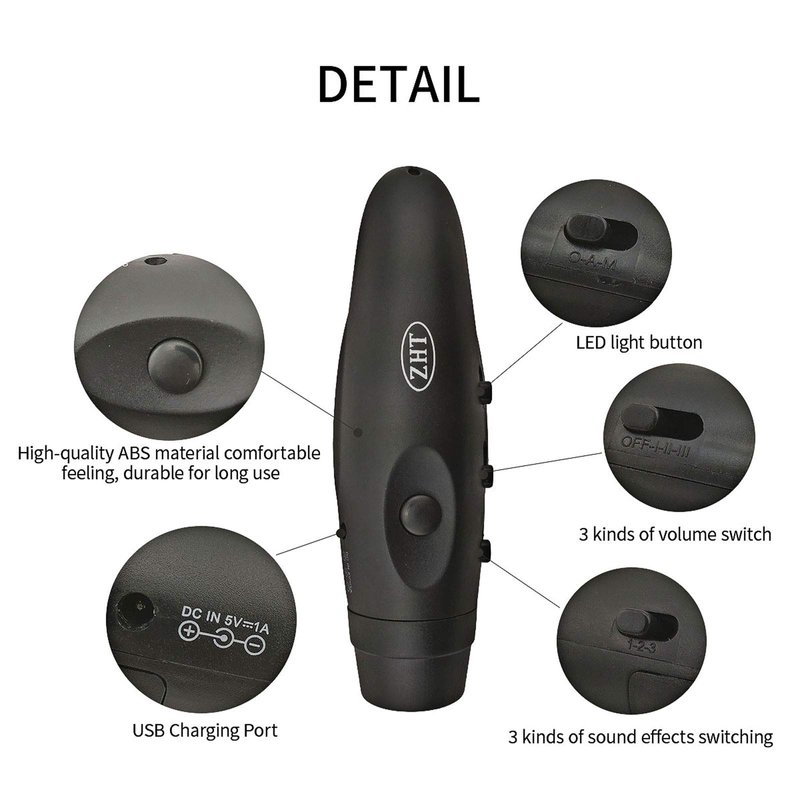 - Unquine Design with Intelligent light ćUnique oval shaped design with cicada totem, offer you a good sense of grip. The Intelligent indicate lights will be changed according different tones and different volum level . The electronic whistle is made of high-quality ABS environmentally friendly materials, tasteless and healthy.