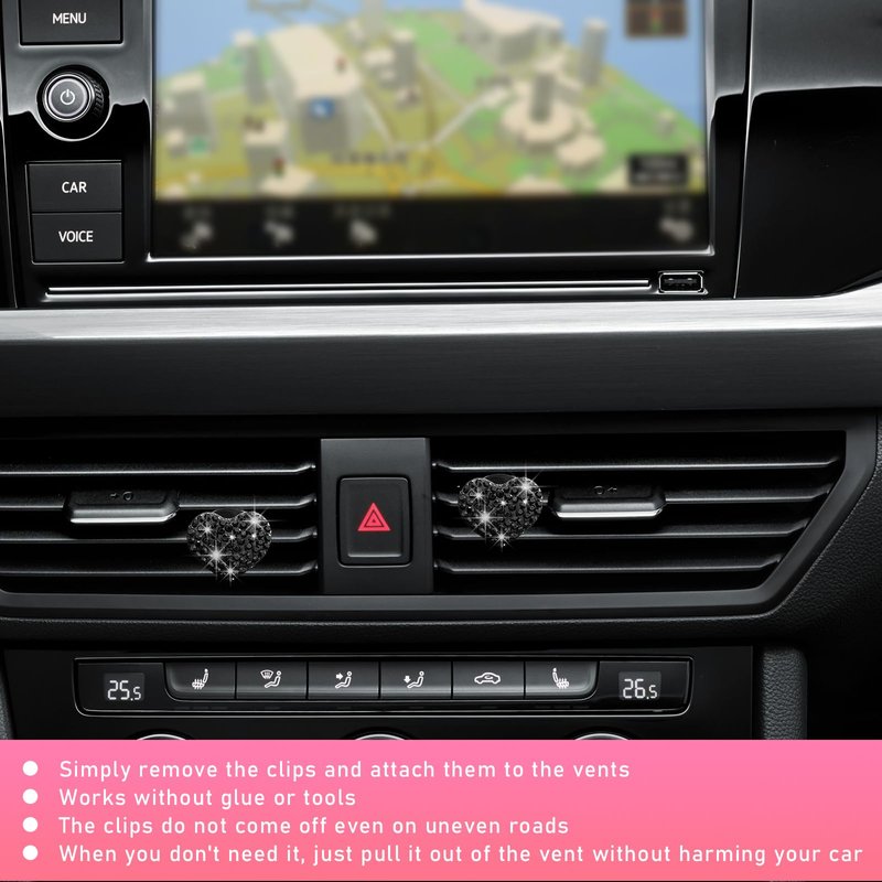 - 【High-Quality Materials】: Our heart shape car air vent clips are made of plastic and rhinestones, which is strong and durable, and not easy to break. It is exquisitely made, not only drop-proof and not deformed, but also the polished surface is smooth to the touch and not easy to scratch your car.