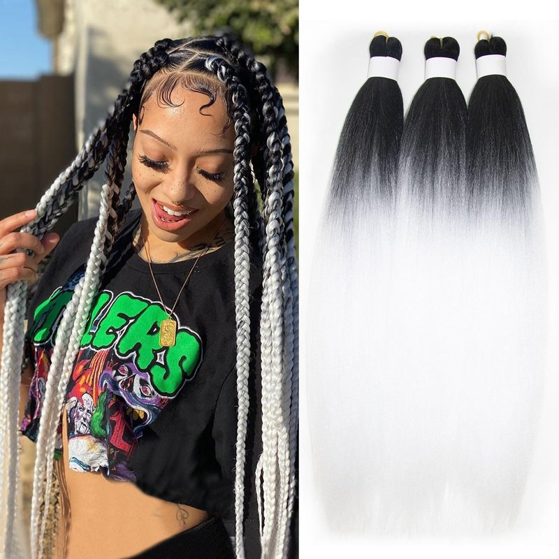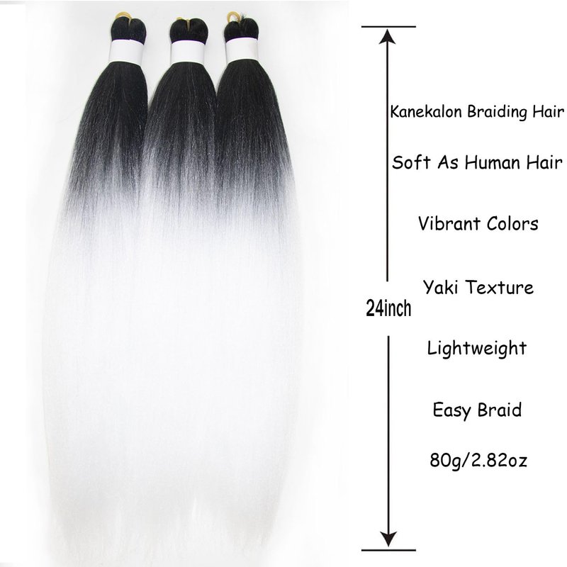 Zifeiya Black and White Braiding Hair Pre Stretched Ombre 24inch 3pcs Knotless Braiding Hair Extensions for Braids Ombre Pre Stretched Braiding Hair (1bwhite)