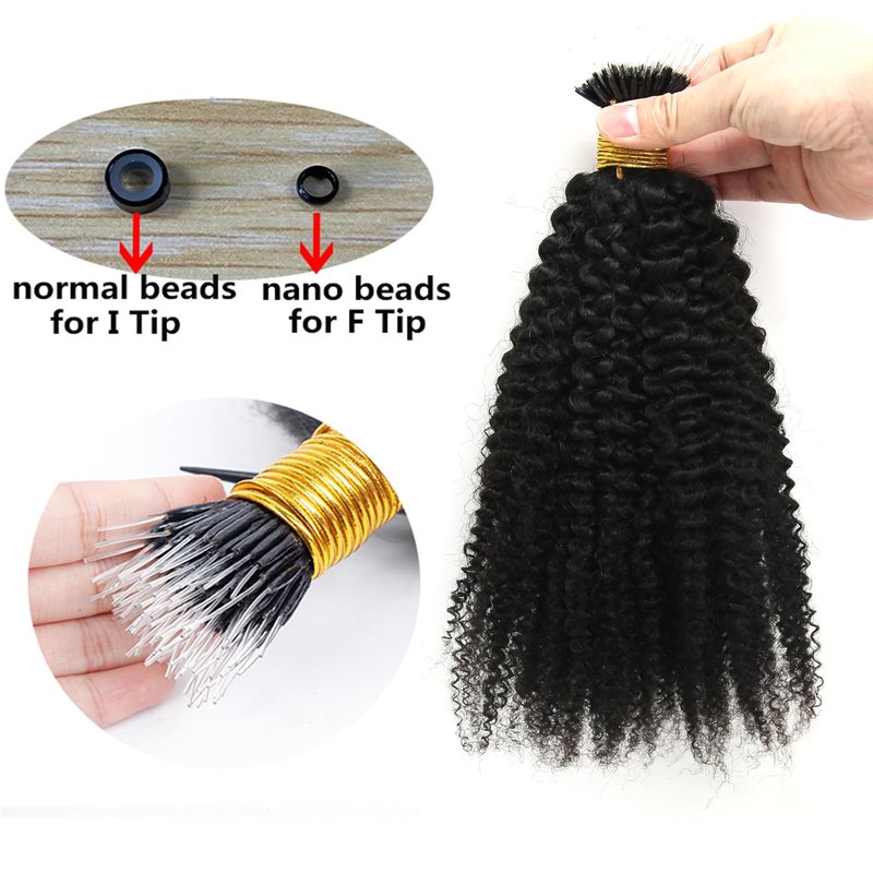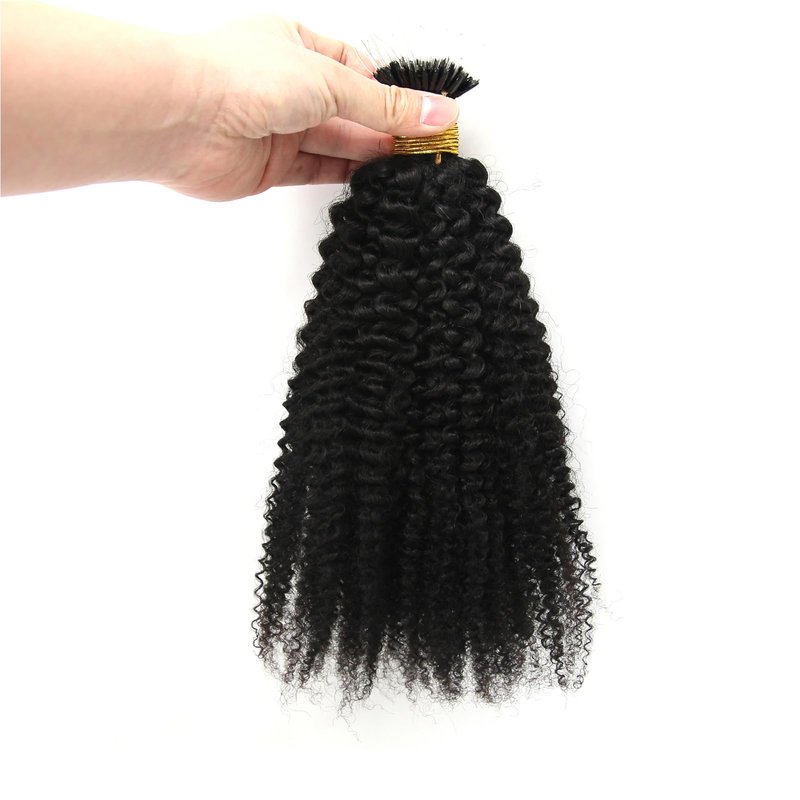 - Afro Kinky Curly F Tips Microlink Human Hair Extensions 1g/strand 100g