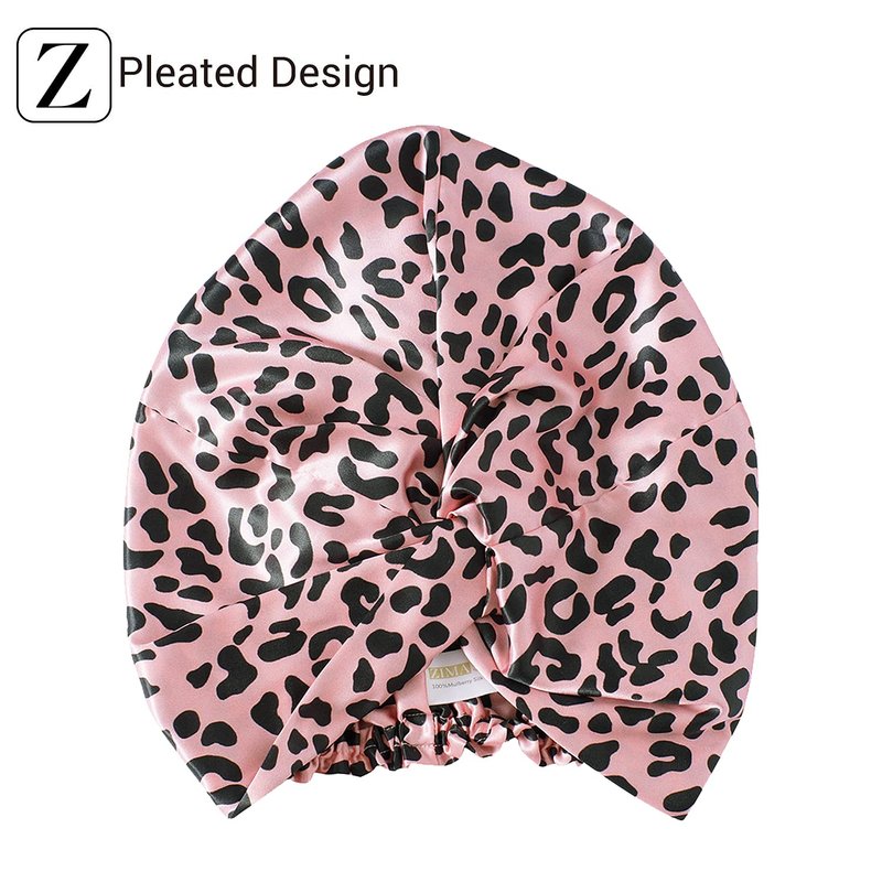 ZIMASILK 22 Momme 100% Mulberry Silk Bonnet for Sleeping & Women Hair Care, Highest Grade 6A Silk hair wrap for sleeping with Premium Elastic Stay On Head (1Pc, Leopard Black/Pink)