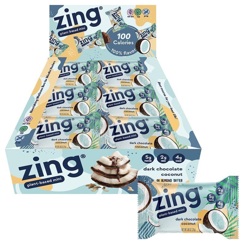 Zing Bars 100 Calorie, Moist and Delicious, Dark Chocolate Coconut, (18 Snack Size Bars)