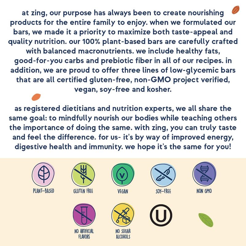- QUICK & CONVENIENT ENERGY: With Zing's variety of flavors, you don’t have to compromise on taste, convenience, or nutrition. Grab one for a good tasting, healthy and quick snack to keep your energy levels high but balanced, for better mood and performance