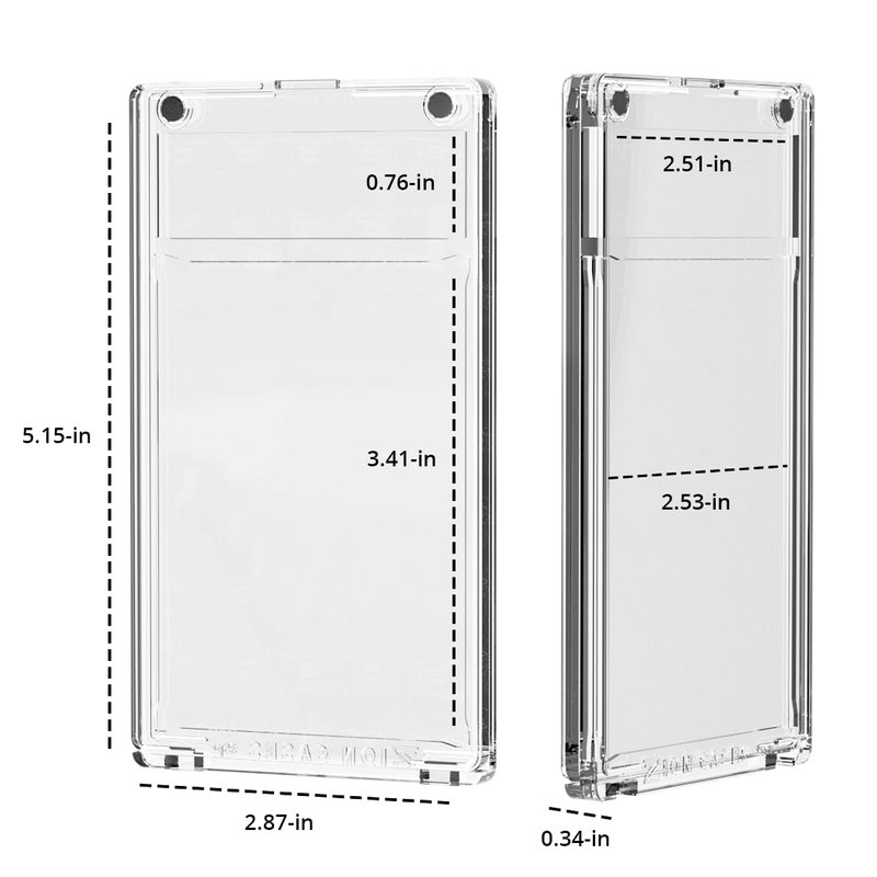 - COMPATABILITY: The MagPro magnetic card case is compatible with all Zion Slab Cases, and the clear plastic offers secure protection of your valuable trading cards, without losing that crisp graded card look. MagPro was designed similar in size to the standard PSA graded card slabs to ensure uniformity across your collection