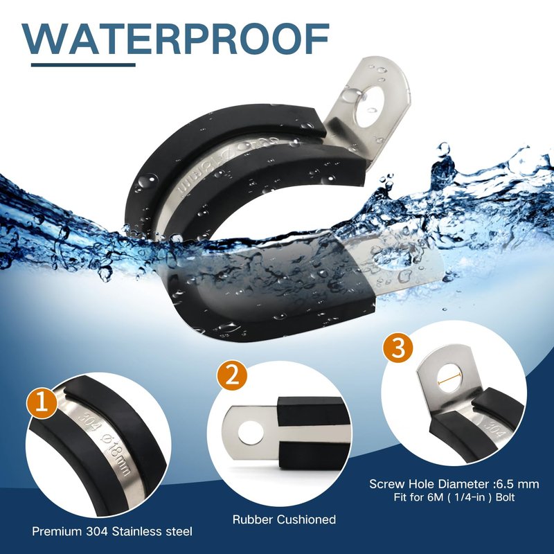 - Metal rubber clamps have a P-shaped design making the clamps flexible and durable, Easy to twist, bend and manipulate during fitment.
