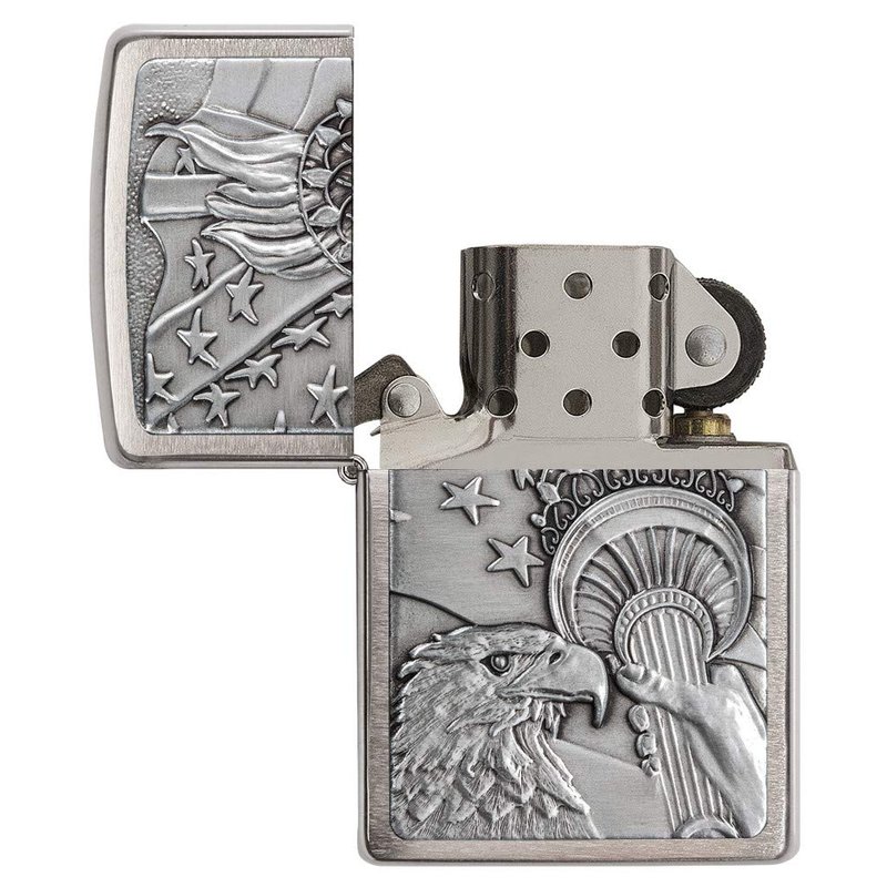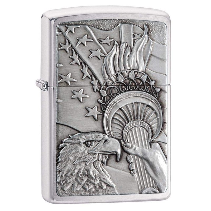 Zippo Patriotic Eagle Brushed Chrome Emblem Pocket Lighter