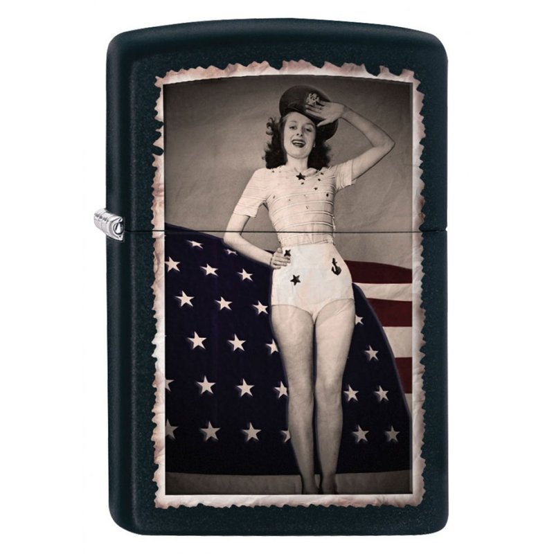 Zippo Saluting Pinup Windproof Lighter, Matte Black