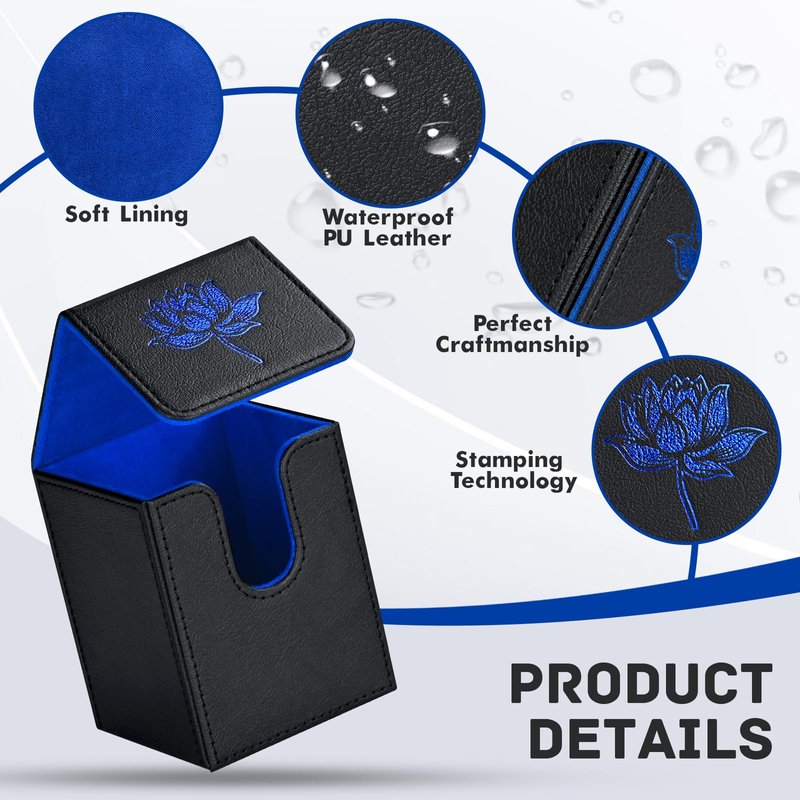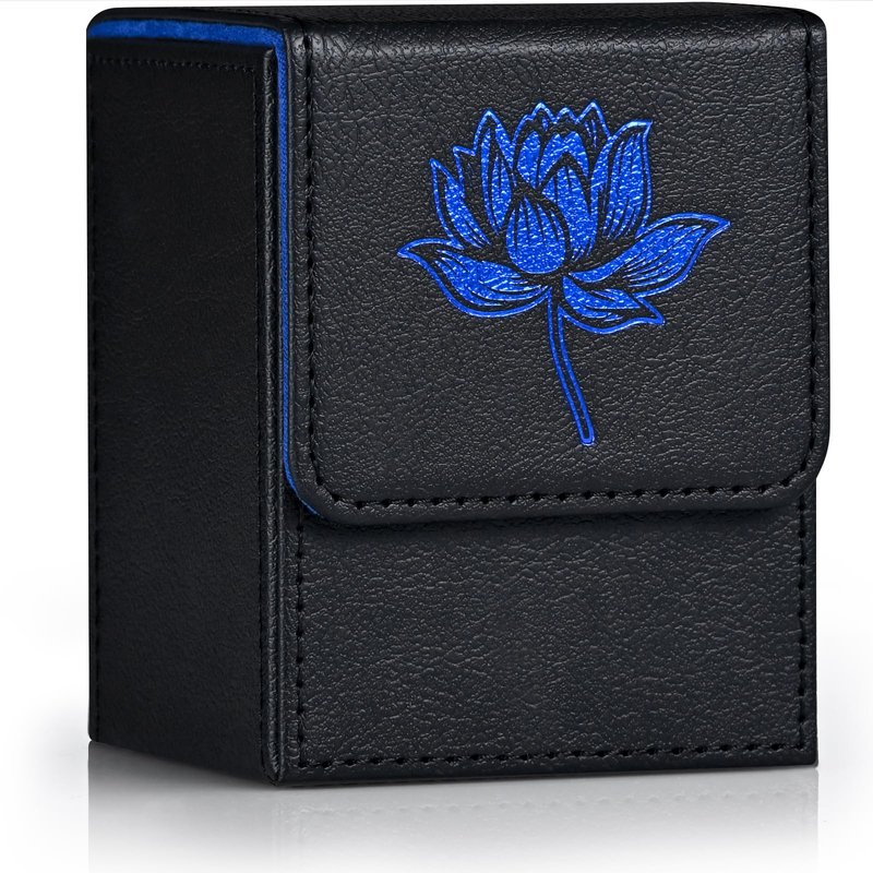 ZLCA Card Deck Box for MTG Cards with 2 Dividers, Card Storage Box Fits 100+ Single Sleeved Cards, PU Leather TCG Card Deck Case Holder for Magic Commander Yugioh (Black&Blue,Lotus)