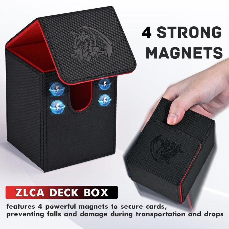 ZLCA Card Deck Box for Trading Cards with 2 Dividers, Card Storage Box Fits 100+ Single Sleeved Cards, PU Leather Card Deck Case Holder for Magic Commander TCG CCG ๏ผBlack&Red,Emperor Dragon๏ผ