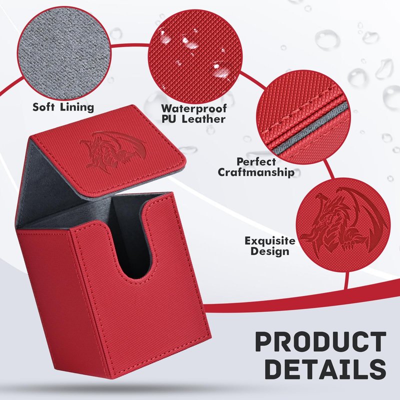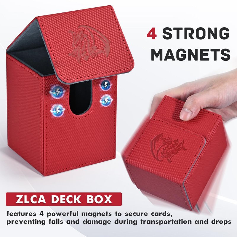ZLCA Card Deck Box for Trading Cards with 2 Dividers, Card Storage Box Fits 100+ Single Sleeved Cards, PU Leather Strong Magnet Card Deck Case Holder for Magic Commander TCG CCG οΌRed,Emperor DragonοΌ