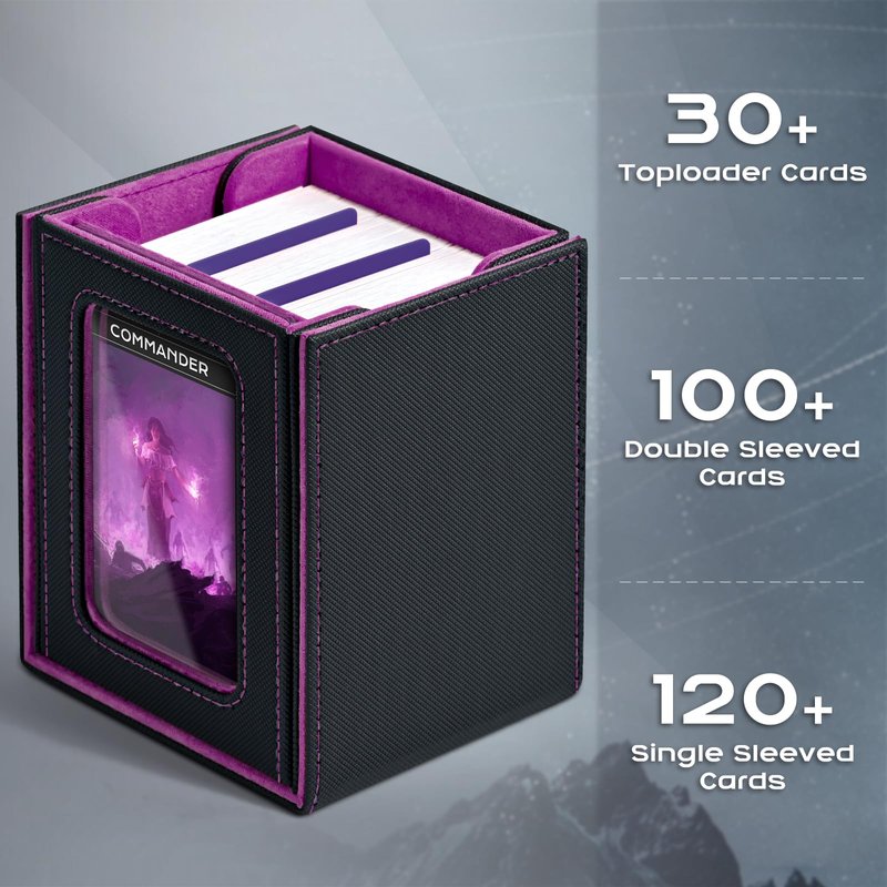 ZLCA MTG Deck Box with Commander Window Display, Trading Card Storage Box Holds 100 Double-Sleeved Cards Suitable for TCG/CCG/PTCG/EDH/Magic/Sport Cards (Black&Purple)
