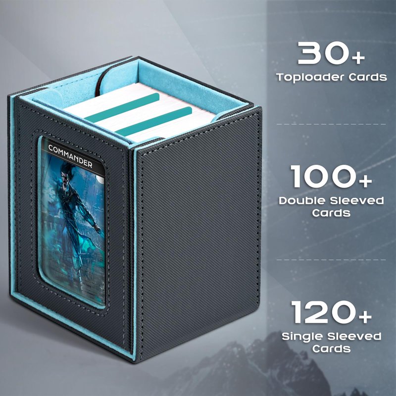 ZLCA MTG Deck Box with Commander Window Display, Trading Card Storage Box Holds 100 Double-Sleeved Cards Suitable for TCG/CCG/PTCG/EDH/Magic/Sport Cards (Grey&Blue)