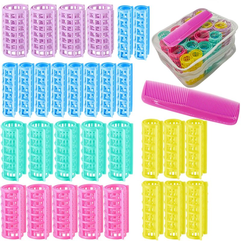 - Package: You will get 30 pieces of plastic hair rollers curlers and 1pc rose red mini comb,Comes with a transparent zipper bag, hair rollers curlers in 5 different colors and sizes,pink, blue, purple, green, yellow color, size information reference image, which is sufficient to meet your different hairdressing needs.