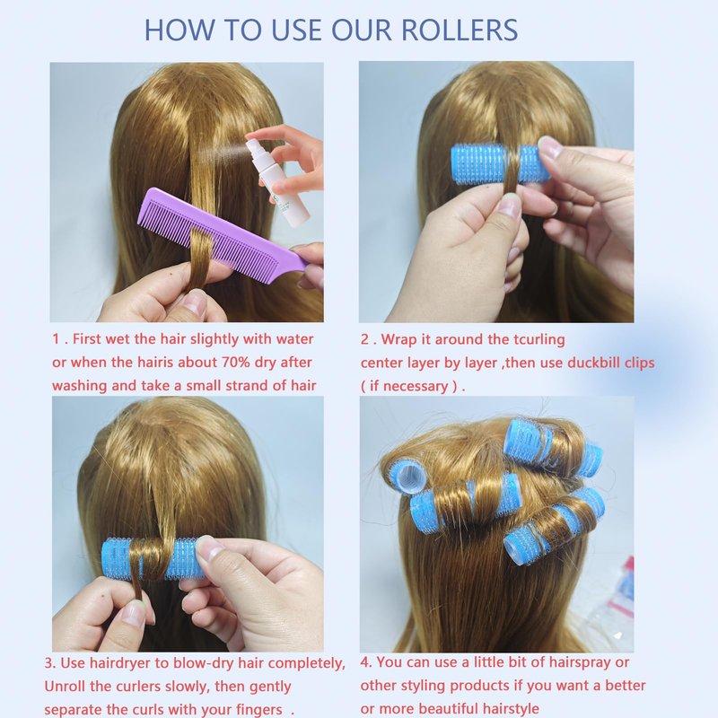 - 【Easy to Use】: Our salon hairdressing are easy to use, simply stick the rollers onto your hair, no clips or pins needed, the self grip design ensures secure hold. Specific usage method is shown in the figure.