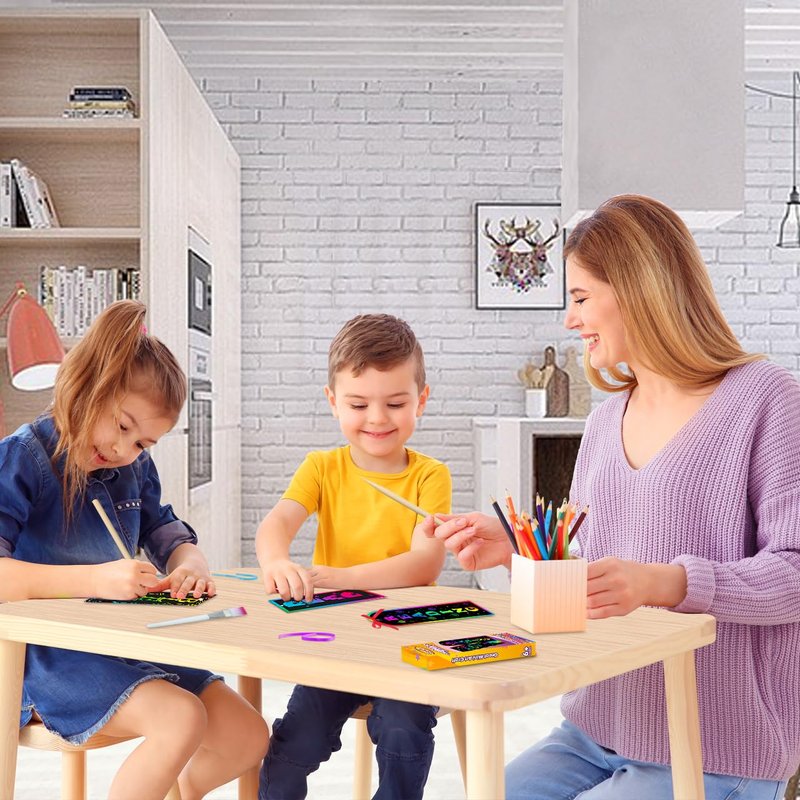 - Easy to Use: Use the stylus to scratch away the surface black film to reveal the beautiful rainbow colors, you instantly have a colorful creation. Colorful ribbon could hang their paintings up to complete a creativity art bookmarks; please store them well in the storage box to prevent inside items from getting lost