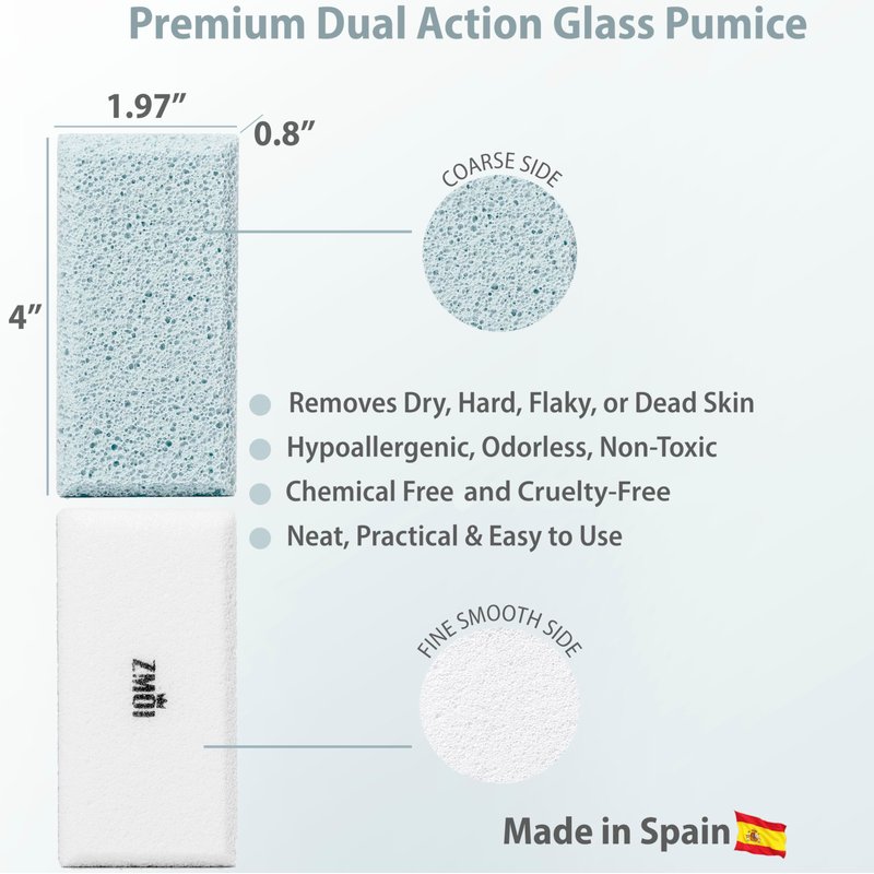 Maintain Softer, Smoother, Clearer-Looking Skin with a Dual-Sided Pumice Stone from ZMOI If you’re someone who works hard and stays active chances are you get dry, rough patches on your feet, hands, and other hard-working areas of the body. And if you don’t have an easy way to remove dead skin or hard patches it can leave your skin feeling rough to the touch and even slightly discolored. Both of which can leave you feeling less than confident and even uncomfortable. We developed the ZMOI Dual-Sided Siliglass Pumice Stone as a quick, easy way to soften your skin and buff it to a beautifully natural glow, so you can enjoy baby soft feet, hands, elbows, and more—and while looking and feeling your best.