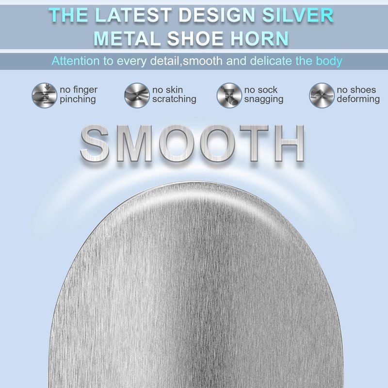 - 💯【THE LATEST DESIGN SILVER METAL SHOE HORN】The latest metal shoe horns were adopt the latest fashion corner design.After careful polishing,the surface is smooth and will not cut shoes and socks.Small metal shoes can take care of your beloved shoes.You no longer need to worry about wrinkles.At the same time,you can avoid touching the bacteria in your shoes