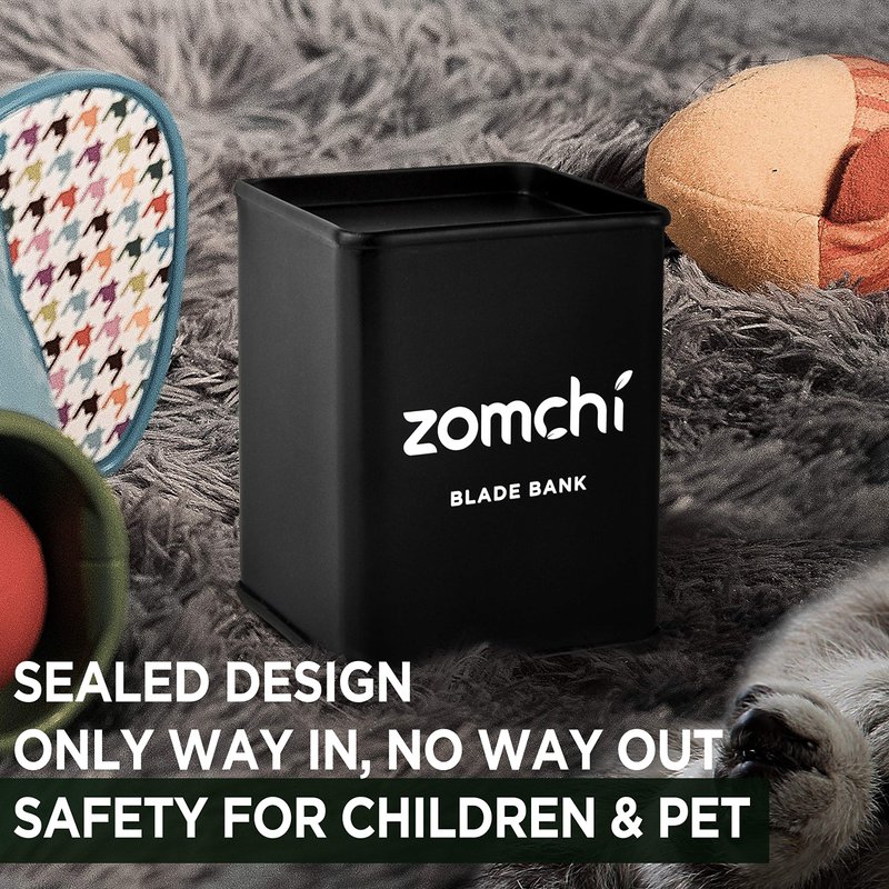 - √【SEALED DESIGN MUCH SAFER】Zomchi Blade Bank with its SEALED DESIGN, The used blades can only slip into the bank through the only Opening Gap at the top of the storage case, which could not only avoid escaping of razor blades and effectively protects users getting hurt when disposal the used razor blades, also can keep children safe although they have touched the Blade Bank in case.