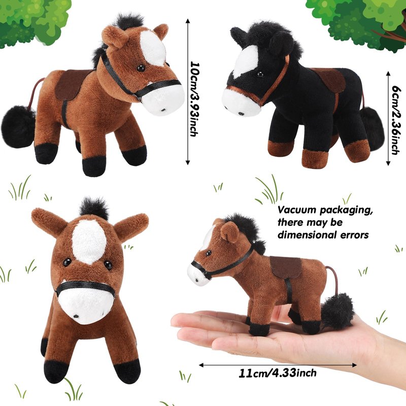- Size Information: the height of standing horse stuffed animals is 10 cm/ 4 inch, the overall length is 15 cm/ 5.9 inches, suitable for playing in the hand, and be stored in a backpack to carry out, note: vacuum packaging, size will change There is an error