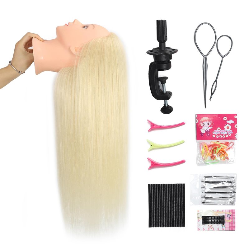 Introducing our premium Mannequin Head with Human Hair, the perfect tool for all your hair styling needs. This 26-28 cosmetology mannequin head is made with 80% real human hair, ensuring a realistic and authentic experience. Whether you're a client looking to weave hair, a hairdresser in need of a hair model for trimming, or a student learning the art of hair cutting, this mannequin head is designed to meet your requirements.Crafted with care, this mannequin head is ideal for practicing various hair styling techniques. From intricate updos to trendy cuts, this doll head for hair styling allows you to experiment and perfect your skills. The high-quality human hair provides a natural texture and feel, making it easy to work with and style.For added convenience, this mannequin head comes with a sturdy stand, allowing you to securely place it during styling sessions. The stand ensures stability and flexibility, enabling you to work comfortably and efficiently. Whether you're a professional hairdresser or a student, this cosmetology mannequin head set is a must-have tool in your kit.Invest in this mannequin head with hair and elevate your hair styling game. Perfect for cosmetology students, hairdressers, and anyone looking to practice and enhance their hair styling skills. Order now and take your creativity to new heights with this versatile and realistic mannequin head.