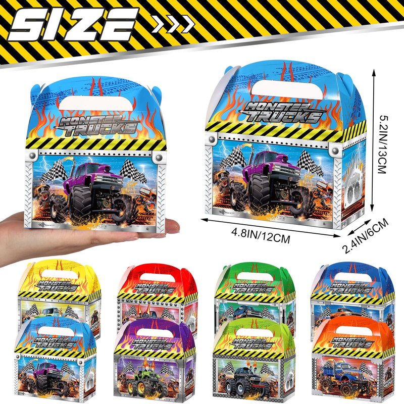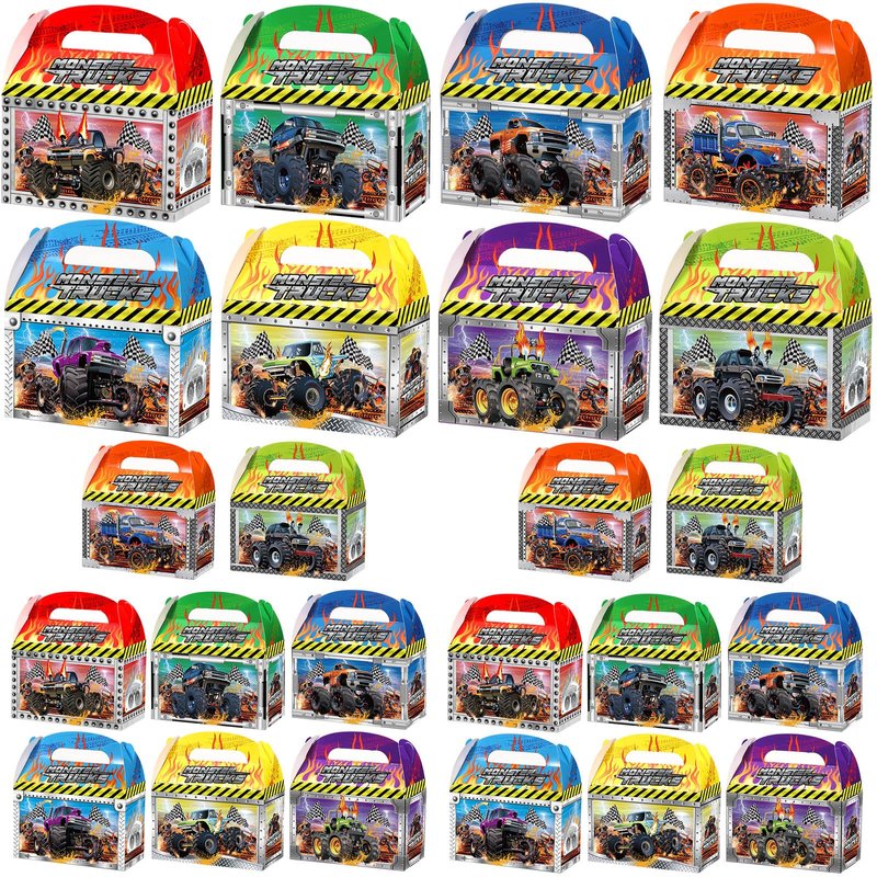 Zonon 24 Pcs Truck Party Favor Bags Racing Car Party Treat Boxes Truck Treat Party Supplies Favor Box for Holiday Birthday Theme Parties Goodie Candy Cookies, 4.8 x 2.4 x 5.2 Inches (Novel Style)