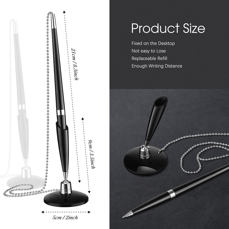 The secure pen with chain and base can keep standing and will not be easy to lose. You can quickly pick it up and use it anytime and anywhere by just reaching out to improve your work efficiency.