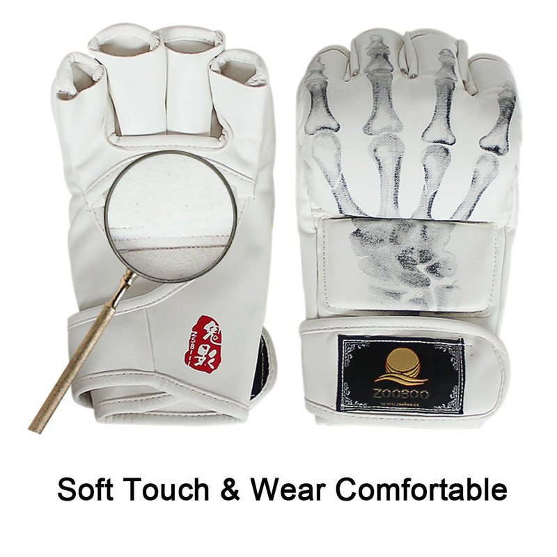 ZooBoo MMA Gloves, Half-Finger Boxing Fight Gloves MMA Mitts with Adjustable Wrist Band for Sanda Sparring Punching Bag Training (One Size Fits Most)