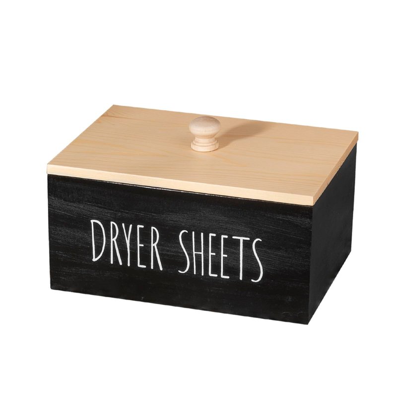 zoocatia Laundry Room Decor Dryer Sheet Container Wood Detergent Dispenser Holder Organization and Storage Box with Lid for Dryer Balls, Laundry Pods, Black