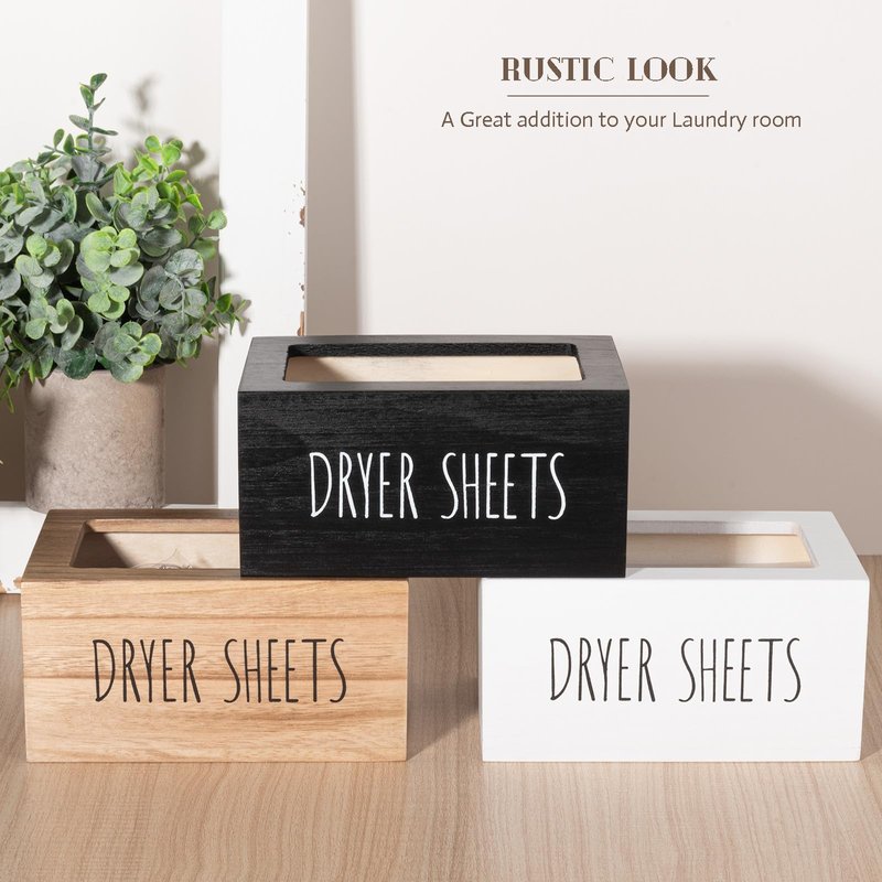 - SPACE-SAVING: Measures 7.3" L × 5" W × 3.6" H, comfortably fit a whole big box of 200 dryer sheets. This dryer sheets makes your laundry room look really nice and organized without, this laundry dryer sheet bin is a great alternative to cardboard dryer sheet product boxes.