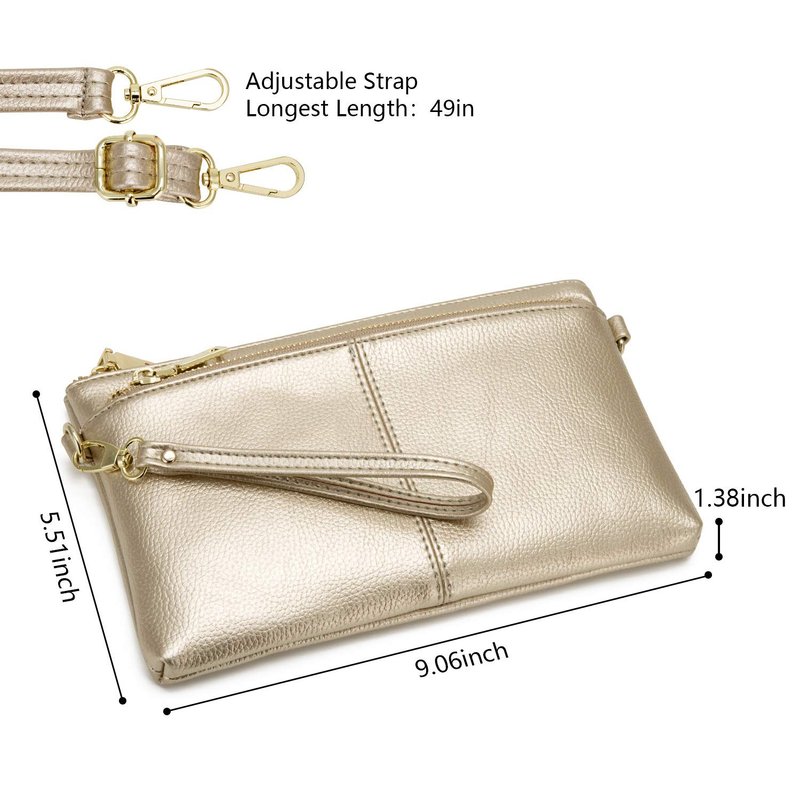 ZOOEASS Triple Zip Small Crossbody Bag Lightweight Purses Vegan Leather Wristlet Clutch, Includes Adjustable Shoulder (Gold)
