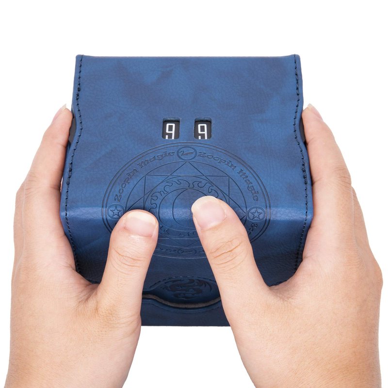 Zoopin Leather Deck Box with Built-in Spinning Life Counter, Blue for MTG,Yugioh,Pokeman,TES Legacy,Munchkins CCG Decks and Also Small Tokens or Dice- Hold 100 Sleeved Cards or 150 Naked Cards …
