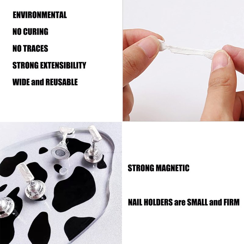 - 【Easy to Operate】 Each practice nail holder and nail base are equipped with metal magnetic, which can be easily adsorbed firmly. Cow pattern base area is large, can be placed stably (Product upgrade: We upgraded 5 nail holders from plastic material to more solid metal material, and we have also removed the 1 extra nail holder)
