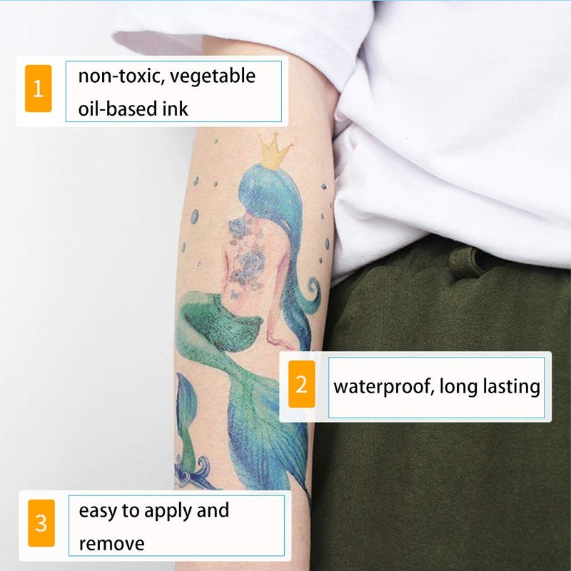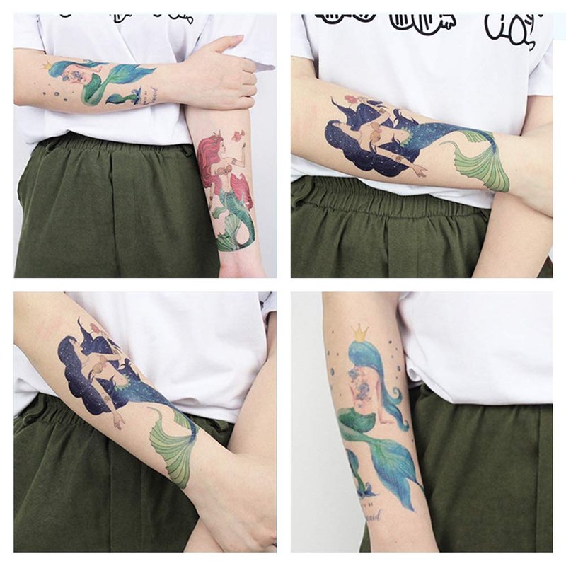 - High-Quality Material: Multicolor mermaid tattoos are crafted with eco-friendly vegetable oil-based ink, waterproof, non-toxic and safe for your skin. Ensuring a vibrant, long-lasting design, add a touch of brightness to you, attracting the atteion of others.