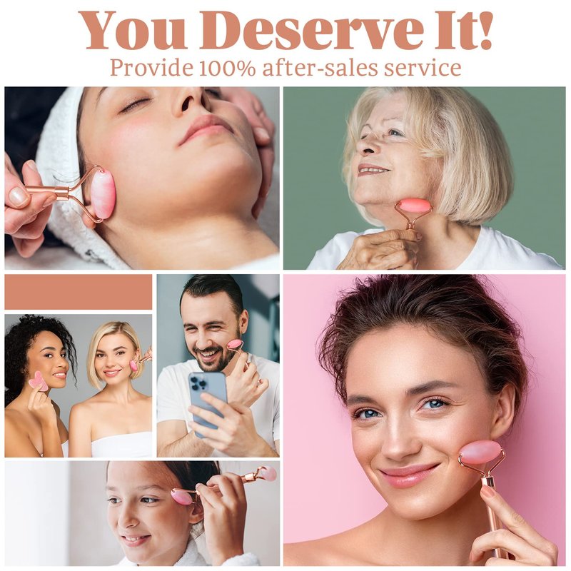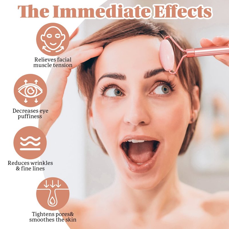 - 【The Effect of Jade Roller and Gua Sha Set】 Jade Massage roller can relieve facial muscle tension, decrease eye puffiness, reduces wrinkles & fine lines, tighten pores and smooth the skin.