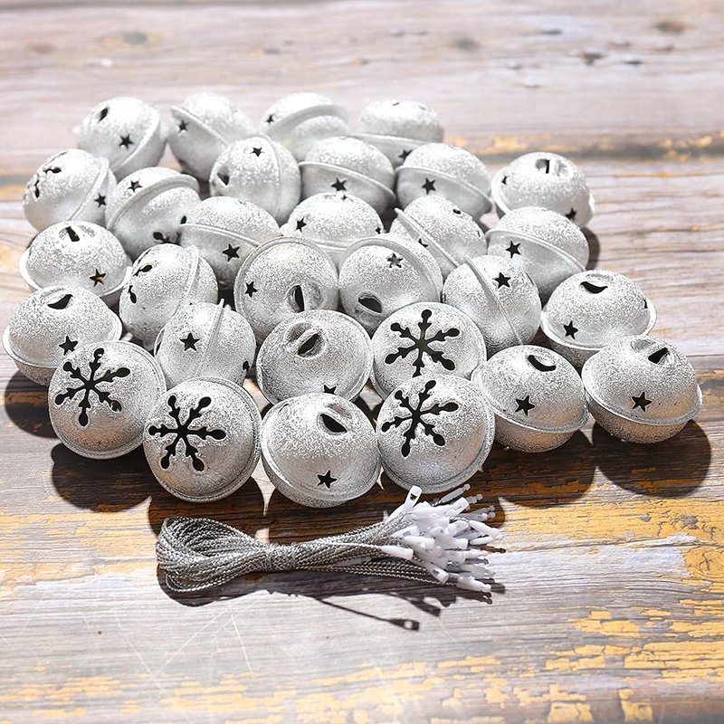 Zsail Christmas Bells 32 Pieces Jingle Bells with Snowflake Cutout 1.6 Inch/ 40 mm Christmas Craft Bells for Christmas Trees and Home Decorations (Silvery)