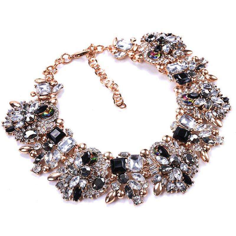 Zthread Rhinestone Bib Statement Necklace Vintage Chunky Chain Choker Collar Necklace Crystal Beads Women Fashion Jewelry Necklace (Black+White)