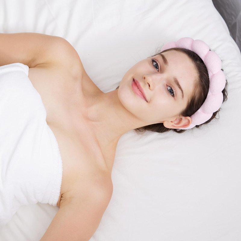 Wear the puff headbands while washing your face, applying skincare peels, serums or masks, getting facials, putting on makeup or sunless tanning.