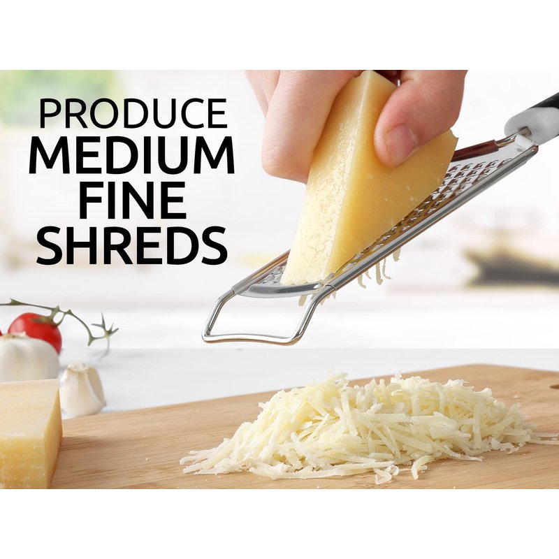- GRATE WITH EASE & SAVE TIME: Our parmesan cheese grater is made with razor-sharp etched stainless steel blades for enjoying finely grated cheese effortlessly. Sprinkle some flavor over a salad, pizza, pasta, a bowl of soup or use it as a citrus zester for adding a tangy twist to your recipes.