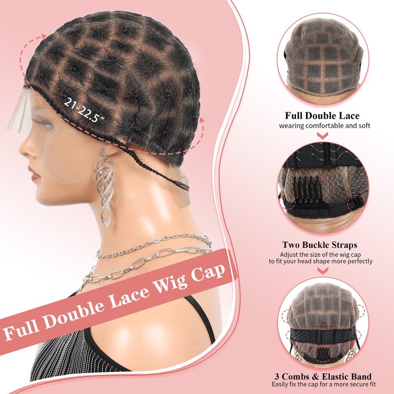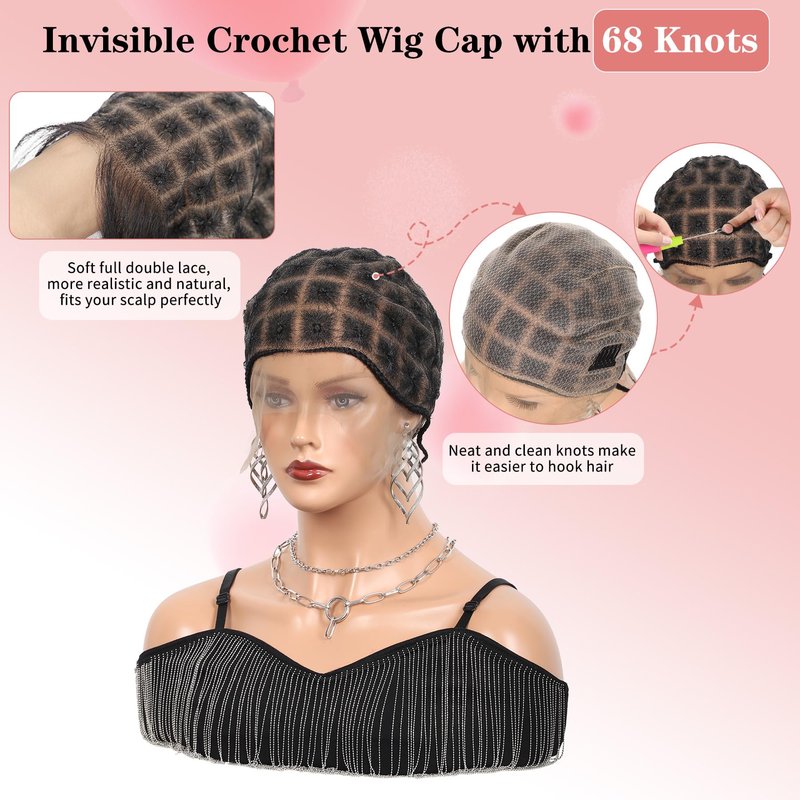 - 【Stunning Double Lace Work】: The lace craftsmanship of this lace wig cap is unique. Natural full double lace, you will be amazed! The breathable material of the crotchet cap with natural knots prevents any discomfort when worn for a long time, and the crochet wig caps for making wigs perfectly matches every skin tone, while also having a soft and comfortable wearing experience, which is a great value for money