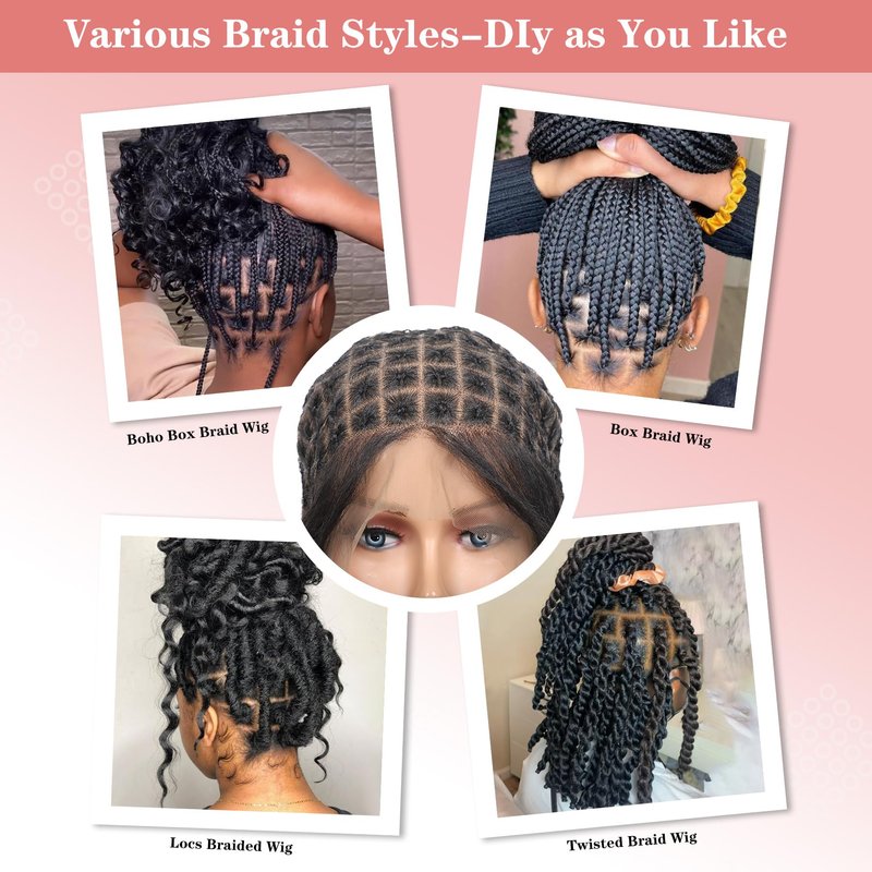 - 【DIY Your Trendy Look】: With this braided wig cap, you can use a crochet hook to quickly add the braid style you want to the glueless wig caps for making braided wigs! Easily DIY a variety of fashionable shapes, such as: Box braids, Boho braids, Foucs braids, Twist braids and more trendy braids. You can wear it on different occasions and get countless compliments
