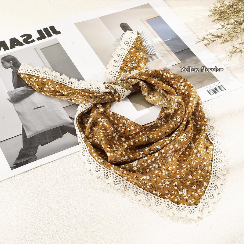 ZURLEFY Floral Hair Scarf Bandanas for Women, Yellow Bandana Headband for Womens Headbands Mesh Hair Scarves Lightweight Head Scarf Hair Accessories (59H-01)