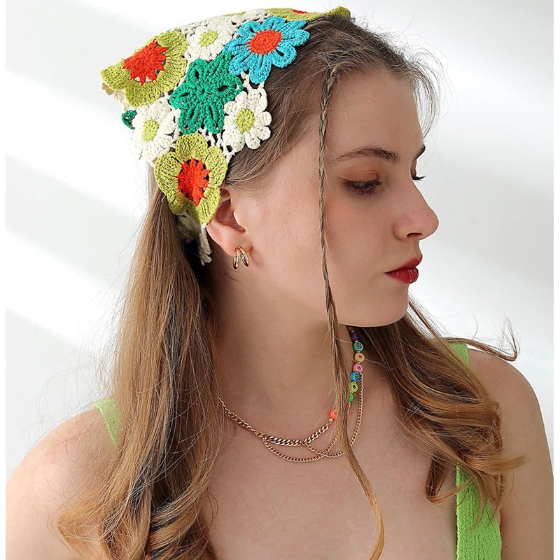 ZURLEFY Green Womens Head Scarf, Floral Bandana Headband for Women Mesh Hair Scarves Lightweight Head Scarf Hair Accessories (59H-02)